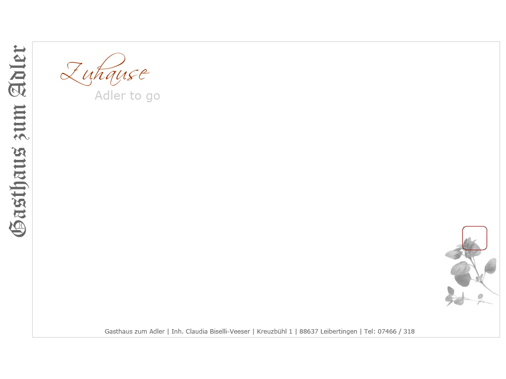 da wir SIe im Moment nicht persönlich bewirten dürfen, ,